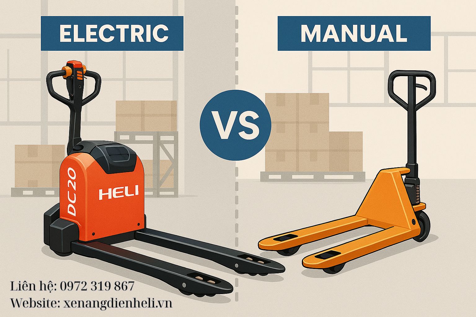 Có nên mua xe nâng tay điện cũ? So sánh với xe nâng HELI mới