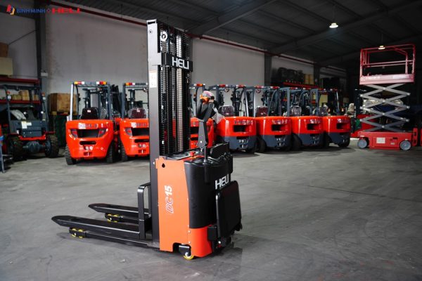 Xe nâng tay điện đứng lái Heli CDD15J-RE là dòng xe nâng có kích thước nhỏ gọn, chuyên sử dụng trong kho có lối đi hẹp. Xe được lắp đặt bệ đứng giúp người dùng có thể di chuyển nhanh hơn.